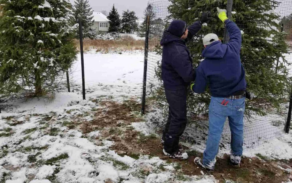 Deer Netting will protect your trees and shrubs from deer eating away at them. Trees and shrubs will be protected with black stakes and black netting to help blend in with the foliage.